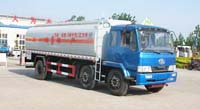 運送介質品名: 汽油;介質密度:700千克/立方米;類項號:3;罐體外形尺寸(長×長軸×短軸)(mm): 7100×2460×1720。駕駛室準乘人數為2人時對應額定載質量15045千克,對應罐體有效容積: 22.5立方米。駕駛室準乘人數為3人時對應額定載質量14980千克,對應罐體有效容積: 22.4立方米。隨底盤選裝駕駛室。 |