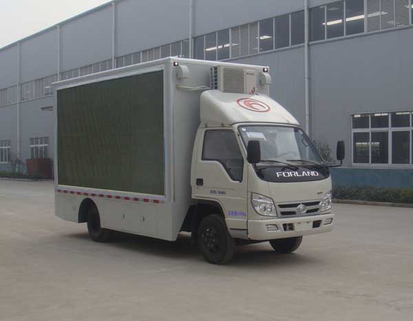 選裝車門覆蓋件,前圍及前部燈具.選裝前圍及前部燈具,選裝車門覆蓋件,選裝保險杠,因選裝保險杠引起前懸加長45。選裝新前格柵。該車主要用于電影放映,專用裝置為發(fā)電機組,放映機,電腦,LED屏。車輛左側和右側分別選裝LED屏。側防護和后防護與車輛結構為一體。車輛后部下邊緣離地高度400mm。 |