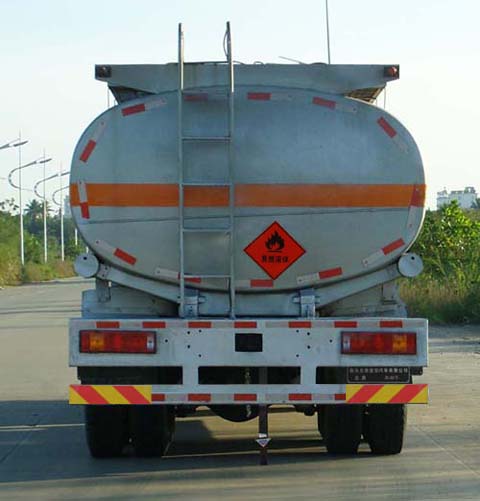整車備注: 1.介質名稱:汽油,介質密度:700千克/立方米,罐體由等截面梯圓形筒體、封頭組成,筒體、封頭厚5mm:長9260mm,罐體下底2500mm,高1680mm;罐體有效容積:28.5立方米。2.選裝中長駕駛室、高頂長駕駛室;駕駛室準乘人數2人、3人分別對應載質量為19370,19305。3.防護裝置的材料為Q235A,采用螺栓連接,后部防護裝置的斷面尺寸:150mm(高)×100mm(縱向寬),離地高度為500mm。加油機型號:JSK-70B1121C,廠家: 穩恩佳力佳(北京)石油化工設備有限公司,貨物名稱/類項號:汽油/第3類中第1項31001和第2項32001.危險品介質類型號:1203,1257.安裝限速裝置,限速80km/h;安裝ABS系統,型號ABS-E 4S/4M,生產廠家:威伯科汽車控制系統(中國)有限公司.僅選用底盤前輪盤式制動器及子午線輪胎, 此車已裝有衛星定位功能的行駛記錄儀。