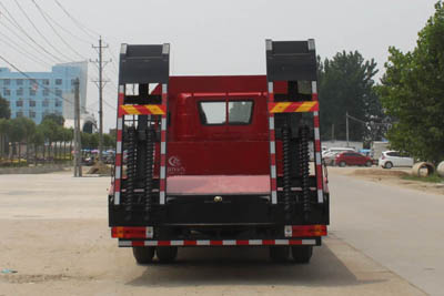 該車僅用于運送不可拆解物體。選裝液壓折疊爬梯。軸距為(mm)5000對應整車尺寸(mm)9000,對應后懸(mm)2600;軸距(mm)4800對應整車尺寸(mm)8500,對應后懸(mm)2300。左右側面及后下部防護均與平板采用焊接連接, 后下部防護離地高度410mm, 后下部防護斷面尺寸(mm):110×40, 防護材料:Q235A。該車發動機型號為: BF4M2012-16E4R,BF4M2012-14E4R,BF4M2012-16E4,BF4M2012-14E4對應的油耗值分別為(L/100km)26.1,26.0, 23.7, 23.5.:該車安裝帶有衛星定位功能的行駛記錄儀。