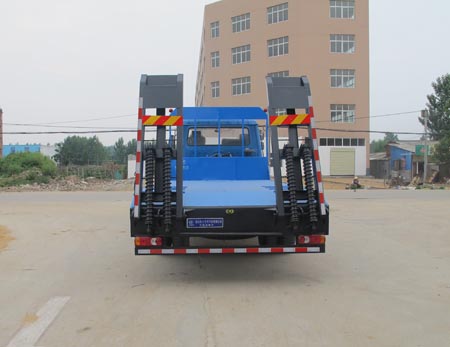 該車僅用于運送不可拆解物體。選裝液壓爬梯。隨底盤選裝新款駕駛室。防護材料:Q235A碳鋼,連接方式:左右側面與平板縱梁采用焊接連接, 后部防護與車架采用焊接連接。該車安裝帶有衛星定位功能的行駛記錄儀。該車選用發動機型號:EQH200-40,ISDe210 40,YC6J200-42,ISDe180 40,YC6J180-42,EQH180-40,ISDe200 40,ISDe185 40,ISDe245 40,YC6A260-46,ISB210 40對應的油耗值分別為(L/100km):28.02,27.93,28.34,30.2,30.58,30.52,28.07,28.48,27.58,27.86,29.37。整車長/前懸/后懸/軸距(mm)對應關系為:9000/1205/2645/5150, 9000/1205/2795/5000, 9000/1250/2600/5150,9000/1250/2750/5000,8400/1205/2495/4700,8400/1250/2450/4700,8000/1205/2295/4500,8000/1250/2250/4500。