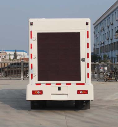 該車是用于廣告宣傳和科普宣傳的專用車輛。兩側均可選裝:LED升降或者不帶升降屏, 滾軸燈箱,條屏, 活動舞臺; 后部可選裝:通風口,后開門; 前部可選裝通風口或LED條屏。側面以及后部為裙邊結構, 側面下沿離地高度360mm;后部下沿離地高430mm;側面以及后部裙板與防護相干涉,可豁免;隨底盤選裝駕駛室。