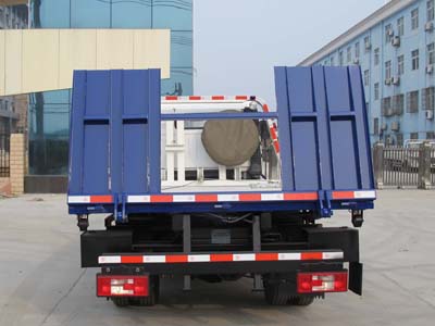 該車是用于道路清障的專用車輛,托舉質量295k。選裝帶導流罩的駕駛室.防護材料:Q235A碳鋼,連接方式:左右側面防護裝置與大梁焊接連接; 后下部防護與車架采用焊接連接,后部防護斷面尺寸(mm):80×155,后部防護離地高度(mm):540。