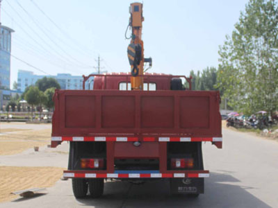 整車備注: 隨底盤選裝駕駛室。貨箱尺寸為長/寬/高(mm):3400/2160/600.上裝起重機型號/自重(kg)/起升載荷(kg)對應關系為:HY3.2S3/750/2000;側面防護及后下部防護裝置材料材質:Q235-A鋼板,連接方式均為焊接連接,后護截面為100mm×40mm,離地高度:490mm.