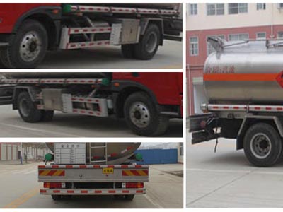 該車適用于危險品運輸,運輸介質:汽油,介質密度為:0.7噸/立方米,類項號:3;罐體有效容積:13.7立方米, 罐體外形尺寸(長/長軸/短軸)(mm):5300/2350/1580。隨底盤選裝平頂駕駛室。防護材料:Q235A碳鋼,連接方式:左右側面及后下部防護均采用焊接連接,后部防護斷面尺寸(mm):135×50,后部防護離地高度(mm):500。僅采用底盤子午線輪胎和帶ABS的底盤; 該車前輪安裝盤式制動器,前置排氣管,裝配限速裝置,限速80km/h。安裝帶有衛星定位功能的行駛記錄儀。ABS生產廠家/型號:上海萬捷汽車控制系統有限公司/VIE ABS-II。僅選用BF4M2012-16E5,BF6M2012-18E5,CA6DLD-22E5型號發動機,對應油耗值(L/100km)分別為:26.1,26.5,26.4。罐體顏色和文字噴涂位置可變化。