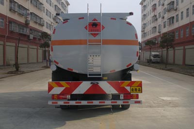 該車適用于危險品運輸,運輸介質:柴油,汽油,煤油,介質密度分別為:0.83噸/立方米, 0.75噸/立方米, 0.80噸/立方米,類項號:3;罐體有效容積:22.7立方米, 罐體外形尺寸(長×長軸×短軸)(mm)為:8400×2450×1560。防護材料:Q235A碳鋼,連接方式:左右側面及后部防護均采用焊接連接,后部防護斷面尺(mm):120×50, 后部防護離地高度(mm):520。僅采用底盤子午線輪胎和帶ABS的底盤,該車前輪安裝盤式制動器,前置排氣管,裝配限速裝置,限速80km/h。安裝帶有衛星定位功能的行駛記錄儀。ABS系統生產廠家:上海萬捷汽車控制系統有限公司,型號:VIE ABS-Ⅱ。