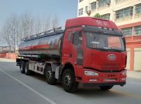 該車適用于危險品運輸,運輸介質(zhì):柴油,汽油,煤油,介質(zhì)密度分別為:0.83噸/立方米, 0.7噸/立方米, 0.80噸/立方米,類項號:3;罐體有效容積:24.1立方米, 罐體外形尺寸(長×長軸×短軸)(mm)為:9000×2250×1550。防護材料:Q235A碳鋼,連接方式:左右側(cè)面及后下部防護均采用焊接連接,后部防護斷面尺寸(mm):135×50,后部防護離地高度(mm):470。僅采用底盤子午線輪胎和帶ABS的底盤; 該車前輪安裝盤式制動器,前置排氣管,裝配限速裝置,限速79km/h。安裝帶有衛(wèi)星定位功能的行駛記錄儀。ABS系統(tǒng)生產(chǎn)廠家:浙江萬安科技股份有限公司,型號:VIE ABS-Ⅱ。油耗對應關系:40.22(CA6DK1-32E5),39.06(CA6DK1-28E5),罐體顏色和文字噴涂位置可變化。