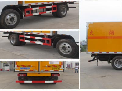 整車備注: 選裝右側(cè)箱體不開(kāi)門,廂體頂部封閉,不可開(kāi)啟:運(yùn)輸品名:黑火藥,炸藥,電引爆雷管, 爆破炸藥,煙花爆竹等,類項(xiàng)號(hào):1.1B,1.1D,1.1G,1.2G,1.3G,1.4G 等; 防護(hù)材料:Q235A碳鋼,連接方式:左右側(cè)面及后下部防護(hù)均采用焊接連接,后部防護(hù)斷面尺寸(mm):100×50,后部防護(hù)離地高度(mm):510,發(fā)動(dòng)機(jī)型號(hào)ISF3.8s5154,對(duì)應(yīng)油耗值分別為22.81。該車安裝帶有衛(wèi)星定位功能的行駛記錄儀。僅采用前盤制動(dòng)器和安裝ABS以及前置消聲器的底盤。采用子午線輪胎。安裝限速裝置,限速80km/h。ABS型號(hào):44600XXXX0;ABS生產(chǎn)企業(yè):威伯科汽車控制系統(tǒng)(中國(guó))有限公司。