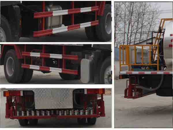整車備注: 罐體有效容積:6.4立方米,運(yùn)輸介質(zhì)為液態(tài)瀝青,密度:900千克/立方米。橢圓罐體外形尺寸(長/長軸/短軸)(mm):4350/2410/1700(罐體內(nèi)部尺寸為3870/1930/1220), 罐體保溫層厚度為240mm。整車長/軸距/前懸/后懸對于關(guān)系為(mm):8650/5000/1250/2400;8350/4700/1250/2400;8350/4500/1250/2600;8050/4200/1250/2600.防護(hù)材料:Q235A碳鋼,連接方式:左右側(cè)面防護(hù)與副梁采用焊接連接;后部專用裝置與后防護(hù)相干涉,故后防護(hù)豁免。ABS系統(tǒng)型號為4460046300,生產(chǎn)企業(yè)為威伯科汽車控制系統(tǒng)(中國)有限公司。
