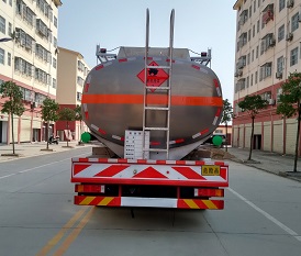 該車適用于危險品運輸,運輸介質:汽油,煤油,柴油。介質密度分別為:0.7噸/立方米,0.8噸/立方米,0.83噸/立方米。類項號:3;罐體有效容積:25.73立方米,罐體外形尺寸(長×長軸×短軸)(mm)為:8500×2250×1650。防護材料:Q235A碳鋼,連接方式:左右側面及后下部防護均采用焊接連接,后部防護斷面尺寸(mm):135×50,后部防護離地高度(mm):480。僅采用底盤子午線輪胎和帶ABS的底盤;該車前輪安裝盤式制動器,