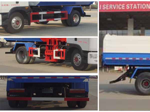 后部防護離地高度(mm):390。2、選裝掛鐵桶裝置。3、整車長度/軸距/整備質量對應關系為(mm):7680/4500/7200,