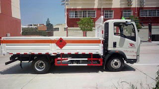 該車適用于運(yùn)輸危險(xiǎn)品, 主要用于運(yùn)輸具有獨(dú)立容器(瓶)包裝的液化石油氣, 丁烷, 乙炔, 乙烷, 丙烷, 丁烯, 打火機(jī)或打火機(jī)加油器, 二氧化碳, 壓縮氧(氮, 空氣, 氦, 氬, 氖), 類項(xiàng)號(hào):2.1, 2.2。該車運(yùn)輸?shù)慕橘|(zhì)為2.1項(xiàng)易燃?xì)怏w時(shí), 車輛采用”易燃?xì)怏w”標(biāo)識(shí)牌, 運(yùn)輸?shù)慕橘|(zhì)為2.2項(xiàng)非易燃無(wú)毒氣體時(shí), 車輛采用”不燃?xì)怏w”標(biāo)識(shí)牌。貨欄顏色可變化, 文字噴涂位置可變化, 選裝無(wú)柵欄。采用發(fā)動(dòng)機(jī)型號(hào)YN27CRE1, YN38CRE1, CY4BK151, JE493ZLQ5, D25TCIE1, D25TCIE3對(duì)應(yīng)油耗值分別為油耗 (L/100km):11.2, 11.6, 12.0, 11.4, 12.0, 12.0。整車長(zhǎng)/軸距/后懸對(duì)應(yīng)關(guān)系為(mm):5995/3280/1555, 5995/3160/1675.防護(hù)材料:Q235A碳鋼, 連接方式:左右側(cè)面及后下部防護(hù)均采用焊接連接, 后部防護(hù)斷面尺寸(mm):100×50, 后部防護(hù)離地高度(mm):520, 該車安裝帶有衛(wèi)星定位功能的行駛記錄儀, 僅采用前盤制動(dòng)器和安裝ABS以及前置消聲器的底盤, 采用子午線輪胎, 安裝限速裝置, 限速79km/h, 專用裝置為固定用卡槽。ABS系統(tǒng)型號(hào)為XH-KQ4S4M-E01, 生產(chǎn)企業(yè)為廣州市西合汽車電子裝備有限公司。
