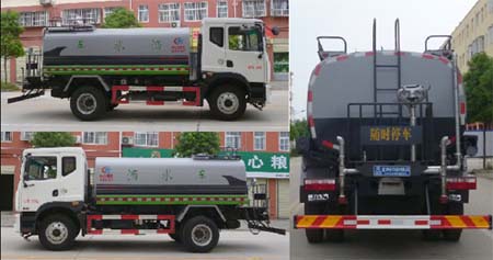 1、該車安裝罐體, 管道系統(tǒng), 操作系統(tǒng), 灑水泵, 取力器, 通過傳動軸帶動水泵完成灑水工作; 2.罐體有效容積:9.34立方米, 僅選用3950mm、4500mm及4700mm軸距底盤改裝。整車長度(mm)/軸距(mm)/后懸(mm)/離去角(°)/罐體外形尺寸(長×長軸×短軸)(mm)/整備質(zhì)量(kg)/額定載質(zhì)量(kg)的對應(yīng)關(guān)系為(mm): 7630/3950/2450/12/4300×2150×1480/6505/9300, 8180/4500/2450/12/4800×2150×1330/6905/8900, 8580/4700/2650/11/5200×2150×1230/6905/8900。 3.側(cè)防護及后下部防護裝置均采用Q235B材質(zhì), 均采用螺栓連接, 后下部防護尺寸:150×50(mm), 離地面高度450mm。4. ABS系統(tǒng)生產(chǎn)廠家, 型號 :焦作博瑞克控制技術(shù)有限公司, J ABS。安裝具有衛(wèi)星定位功能的行駛記錄儀。5.可選新款外觀。6.YC4EG170-50發(fā)動機最大凈功率:122(KW), YC4EG185-50發(fā)動機最大凈功率:131(KW), ISB210 50發(fā)動機最大凈功率:149(KW), ISD160 50發(fā)動機最大凈功率:113(KW), ISB180 50發(fā)動機最大凈功率:128(KW), YC4S160-50發(fā)動機最大凈功率:113(KW)