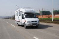 自行式房車是采用依維柯都靈ⅴ歐三發動機專用底盤制造,發動機型號為SOFIM8140.43S3,排量2.8L渦輪增壓柴油發動機,功率為92千瓦,手動5檔變速箱,全盤式制動系統帶ABS,最高車速可達140公里/小時。整車外形設計簡潔、流暢,樸實無華的風格很鮮明。車身采用歐美房車傳統工藝的三明治式復合制板結構,車身外部材料為進口高強度玻璃纖維復合板材,具有高強度、高回彈、防腐性能好等優點。車身外飾可多種選擇,紅色、灰色和白色的三色條紋涂裝很有活力。     車廂內部分為五個區域:駕駛室、臥室、起居室、衛生間及廚房,通過合理的布局與精心的設計,每個區域都得到了有效的利用、并充分體現了人性化的設計原則。駕駛室設立了兩個座位,內部空間非常寬敞,所有的控制按鍵和操控桿都位于中控臺上方,并且都偏向駕駛員一側。車內可滿足4—6人居住、生活和娛樂,全國均可上藍色牌照,C1駕駛本即可駕駛它上路。