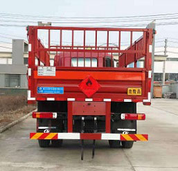 其它 | 該車適用于運輸危險物品為危化品運輸車。主要用于運輸具有獨立容器(瓶)包裝的液化石油氣,丁烷,乙炔,乙烷,丙烷,丁烯,打火機或打火機加油器,二氧化碳,壓縮氧(氮,空氣,氦,氬,氖),類項號:2.1,2.2。該車運輸的介質為2.1項易燃氣體時,車輛采用”易燃氣體”標識牌,運輸的介質為2.2項非易燃無毒氣體時,車輛采用”不燃氣體”標識牌。整車長度/軸距/后懸對應關系為(mm):8500/5250/1960,8500/4800/2410,8500/4500/2710,8500/5100/2110。該車安裝帶有衛星定位功能的行駛記錄儀,僅采用前盤制動器和安裝ABS以及前置消聲器的底盤,采用子午線輪胎,前置排氣管,安裝限速裝置,限速80km/h。專用裝置為固定用卡槽。側防護和后防護裝置材料材質為Q235A碳鋼,側防護與箱體底部焊接連接,后防護裝置與車架采用焊接連接。后防護截面尺寸(mm):120×50,離地高度為500mm。發動機WP4.6NQ220E61對應的油耗值(L/100km)為:25.89。ABS型號為CM4XL-4S/4M,生產廠家為廣州瑞立科密汽車電子股份有限公司。 |