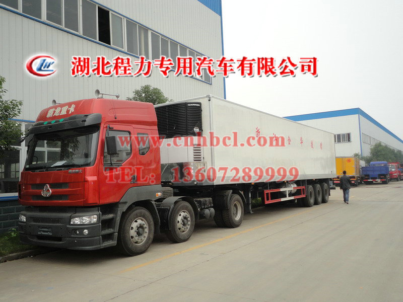 選裝零下5-10-15度獨立制冷機組,內(nèi)外蒙皮為玻璃鋼結(jié)構(gòu),行走部分為13噸富華橋,11.00-20鋼絲胎.