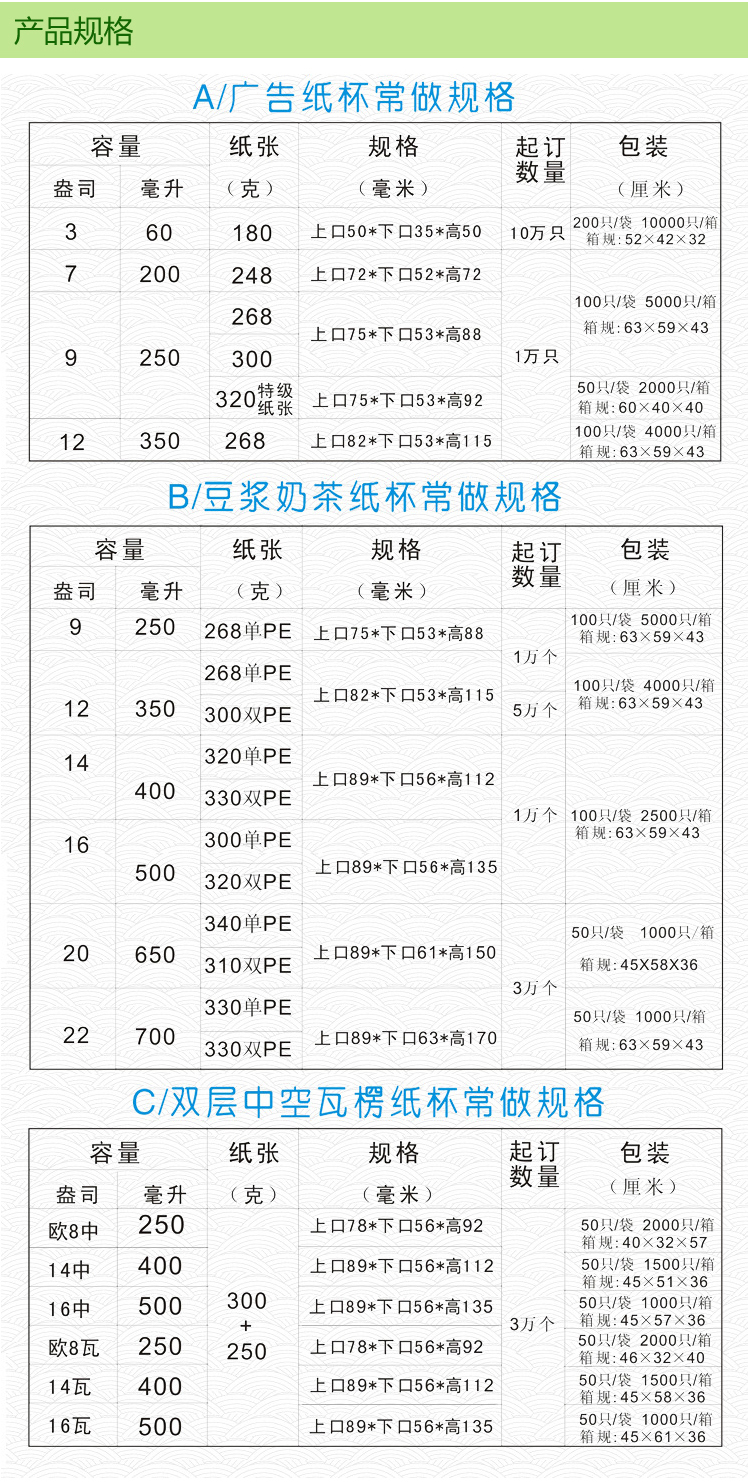 此項產品的各項參數以具體實際為準,需要了解更多關于一次性紙杯批發的詳細信息,請直接撥打我們的熱線電話18958877606,或聯系我們的在線客服。