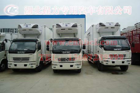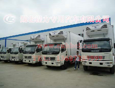 東風康霸冷藏車,10CM厚玻璃鋼制作,帶KINGTEC獨立冷藏機組,冷藏溫度可達-20℃。