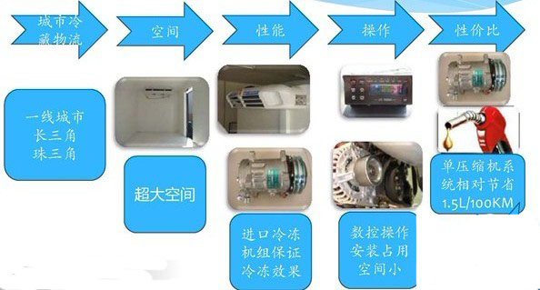 目前國內冷藏車均采用雙壓縮機雙系統設計方法,即一套空調系統,一套制冷系統,兩套系統獨立工作。單壓縮機雙系統則采用另外一種全新設計方法,只需一個壓縮機,一個冷凝器,兩個蒸發器及相應配套設備,利用溫度控制儀和自動電子分配系統對冷藏車和駕駛室空調合理分配制冷量,既能滿足制冷冷箱的制冷,又能滿足駕駛室空調的使用。采用單壓縮機方案有明顯的技術優勢,和雙壓縮機制冷方法相比具有:油耗低、噪音低、節省成本,安裝簡單,使用方便等優點。尤其是對康明斯發動機等方便裝兩個壓縮機的車輛更有優勢。單壓縮機雙系統技術目前在日本、韓國及歐美國家冷藏車上普遍采用。