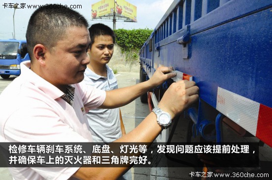 檢修車輛剎車系統、底盤、燈光等,發現問題應該提前處理,否則進監測站之后通不過就要多花銀子了。并確保車上的滅火器和三角牌、反光紙的完好。