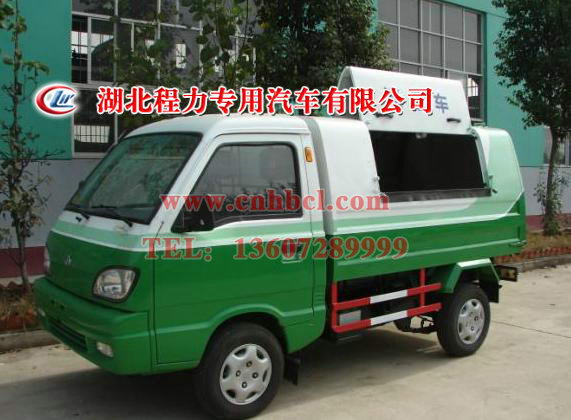 湖北程力專用汽車有限公司著力打造的微型小型密封式垃圾車為環衛部門垃圾收集作業車輛,專用裝置由垃圾收集箱體及箱體自卸舉升系統組成,零散垃圾由箱體兩邊的側門投入,進行收集,然后轉運至垃圾中轉站或者是垃圾填埋場等場所,利用舉升系統,垃圾箱舉升,后門打開,進行垃圾自卸作業。