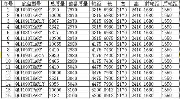 該系列底盤共4種軸距,最高車速超過120Km/h,前排乘坐3人,輪胎規格有三種 8.25-16,9.5R17.5,8.25-20,8.25R20