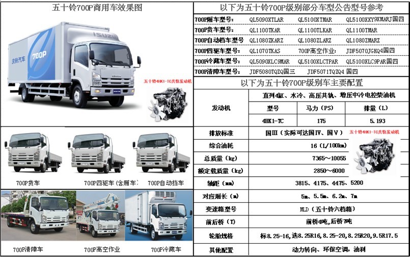 五十鈴700P中型商用車是五十鈴最新的全球戰略車型,慶鈴與五十鈴同步換代,投放中國市場,填補中國高品質中型商用市場空白