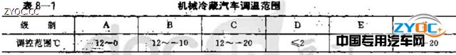 按機械冷藏汽車制冷裝置在環境溫度為30°C時,廂內溫度可調控范圍分為6級,見表8-1.