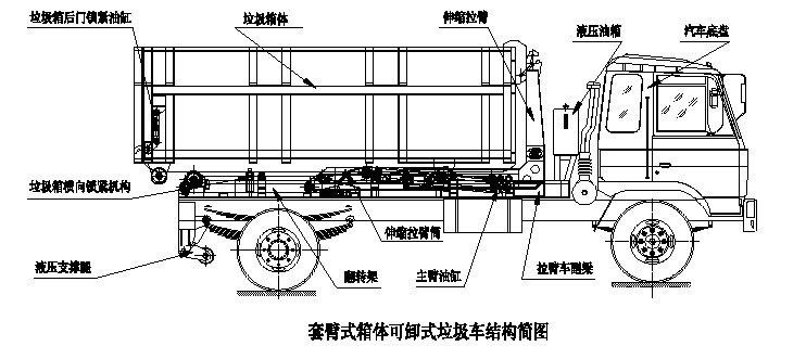 一、垃圾車(chē)箱體可卸(拉臂)式垃圾車(chē)使用說(shuō)明書(shū)(套臂式)--結(jié)構(gòu)簡(jiǎn)圖