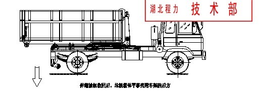 步聚5、完成垃圾箱體的上車(chē)工作,松開(kāi)取力器,整車(chē)卸垃圾操作步聚: