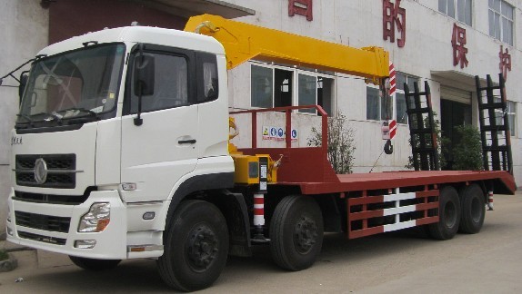 平板車隨車吊是隨車吊裝在平板上面的一種車型。適合運(yùn)輸工程設(shè)備。一般情況下,該車只能套用隨車吊或者平板車的公告。所以,選擇該車型的時(shí)候,請(qǐng)考慮上牌的問題。