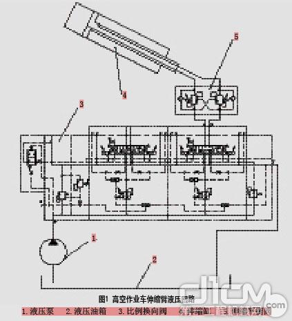 圖1 該高空作業車伸縮臂液壓回路