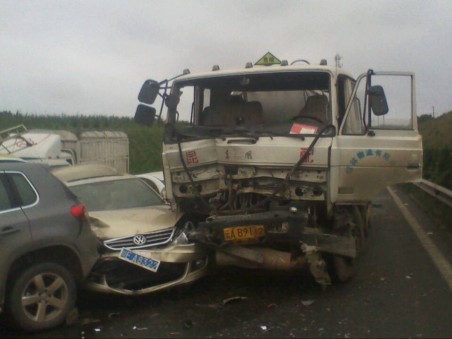 目擊者說,當時因嵩待高速公路昆明往東川方向55公里處前不到2公里的地方發生2起追尾事故,交警在處理事故時,將昆明方向駛來的車輛攔截,對事故進行處理。這時,后面一輛拉有10噸汽油的油罐車由于來不及剎車,司機只好向左超車,結果造成10車相撞。一位重傷者及幾名輕傷者均被送往尋甸第一人民醫院救治。截至17時,昆明到會澤、東川、巧家、昭通路仍處于中斷狀態,受傷人員又有增加,云南省急救中心醫護人員也趕到現場增援。