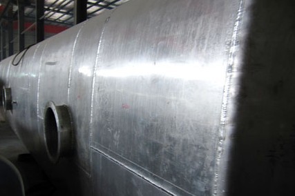 從車間工人了解到,鋁合金油罐車生產(chǎn)需要一定技術(shù)才能完成,它需要采用氬弧焊技術(shù)來完成制作,氬弧焊技術(shù)是在普通電弧焊的原理的基礎(chǔ)上,利用氬氣對金屬焊材的保護(hù),通過高電流使焊材在被焊基材上融化成液態(tài)形成溶池,使被焊金屬和焊材達(dá)到冶金結(jié)合的一種焊接技術(shù),如圖為在生產(chǎn)車間細(xì)拍公司鋁合金油罐的圖片,它還沒有上漆,剛剛完成焊接,我們程力汽車公司的鋁合金材料焊接技術(shù)已經(jīng)非常成熟,所以焊接的非常完美,如圖1: