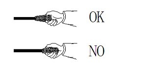 請不要按圖示中的錯誤方式握操縱桿,以保證在系統達到最大工作壓力時能讓操縱桿迅速復位(回到中位)。