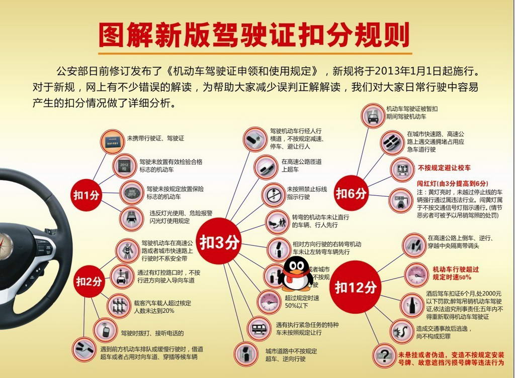 圖解新版駕駛證扣分規(guī)則