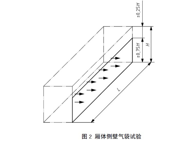 6.4.4.1 氣袋應能承受試驗要求的壓力,膨脹后具有在加載方向上至少延伸500mm 的能力,并能將試