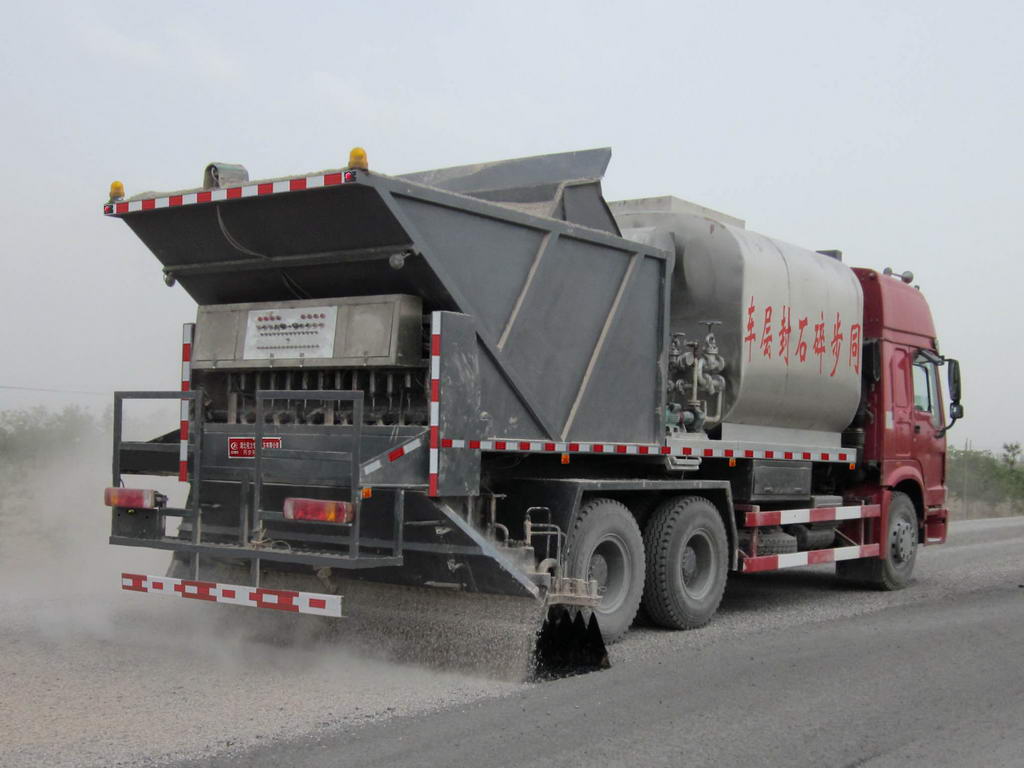 同步碎石車主要有瀝青灑布系統(tǒng)、石料撒布系統(tǒng)、電氣操作系統(tǒng)、輔機系統(tǒng)組成。