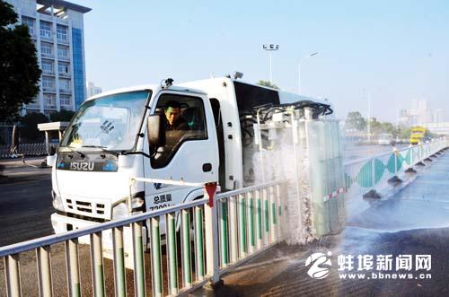 11月4日,珠城市首臺護(hù)欄清洗車正在東海大道上清洗護(hù)欄。近年來,珠城市先后多次購置先進(jìn)環(huán)衛(wèi)設(shè)備,提升了我市主要道路機(jī)械化清掃率,實(shí)現(xiàn)以機(jī)械化沖洗、清掃為主,人工保潔為輔的道路清掃作業(yè)新模式。(來源于:蚌埠新聞網(wǎng))