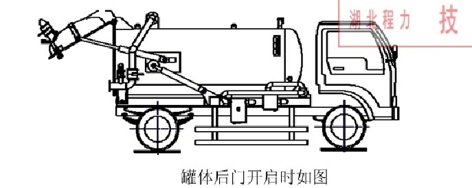⑹ 排出污泥后的復原操作:將后門油缸操作桿置于“鎖緊”位置,安全下降后檢查下述內容: