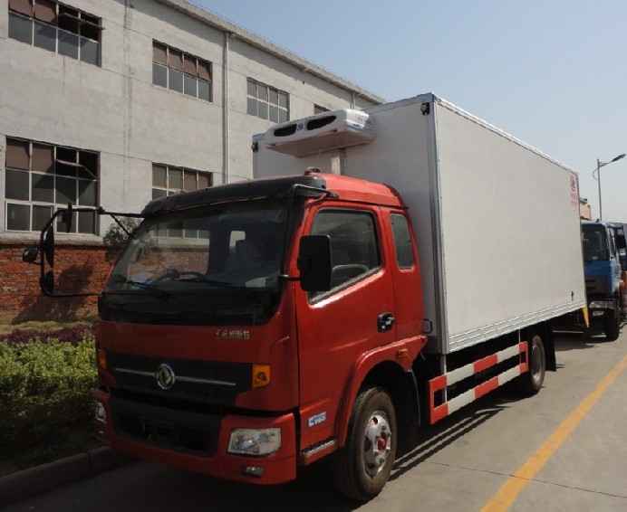 5-10噸冷藏車有哪些車型可以選購?冷藏車是用來運輸冷凍或保鮮的貨物的封閉式廂式運輸車,是裝有制冷機組的制冷裝置和聚氨酯隔熱廂的冷藏專用運輸汽車,常用于運輸冷凍食品(冷凍車),奶制品(奶品運輸車)、蔬菜水果(鮮貨運輸車)、疫苗藥品(疫苗運輸車)等。冷藏車由專用汽車底盤的行走部分,與隔熱保溫廂體(一般由聚氨酯材料、玻璃鋼組成,彩鋼板,不銹鋼等),制冷機組,車廂內溫度記錄儀等部件組成,對于特殊要求的車輛,如肉鉤車,可加裝肉鉤,攔腰,鋁合金導軌,通風槽等選裝件。下面小編來介紹一下5-10噸冷藏車相關參數及配置: