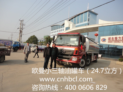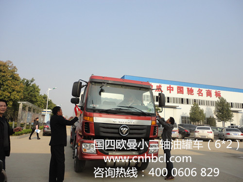 2014年熱銷中的小三軸油罐車,河南客戶來廠提車國(guó)四油罐車,這位客戶是第四次來我們廠提車了,此款小三軸油罐車選用歐曼原廠底盤,整車型號(hào):BJ5253GYY-XA,底盤型號(hào):BJ5253GYY-XA,采用歐曼ETX2200平頂駕駛室,國(guó)四康機(jī)210馬力發(fā)動(dòng)機(jī),大同七檔變速箱帶取力器,10噸后橋, 10.00R20輪胎,380L鋁合金油箱、空調(diào)、前盤制動(dòng),ECU電子限速,ABS,排氣管前置;小三軸油罐車罐體容積:24.7立方,罐體采用武鋼國(guó)標(biāo)鋼材制作,罐體平分二倉二個(gè)罐口,帶一個(gè)三通連接,帶泵,二個(gè)2.5寸自流閥,罐體顏色金屬漆,貼“爆”及反光標(biāo)貼。下面小編展示一下些款小三軸油罐車靚照: