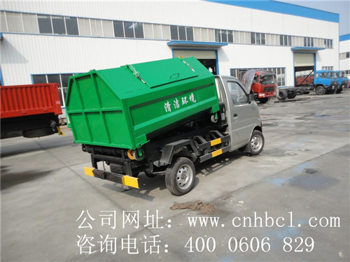4) 拉臂式垃圾車:又稱車廂可卸式垃圾車,可一車配多個垃圾斗,各垃圾點放置多個垃圾斗,帶自卸功能,液壓操作,傾倒方便,在裝卸的運輸過程中可有效地避免二次污染,該車廣泛適用于城市街道學校的垃圾處理。