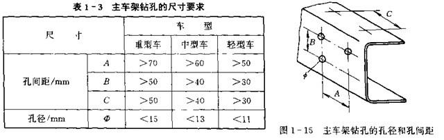 主車架是受載荷很大的部件,除承受整車靜載荷外,還要受到車輛行駛時(shí)的動(dòng)載荷,為了保持主車架的強(qiáng)度和剛度,原剛上不允許在主車架縱梁上鉆孔和焊接,應(yīng)盡量使用車架上原有的孔。