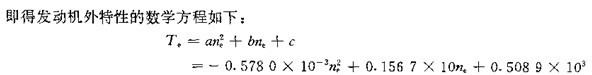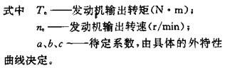 在外特性圖上,發動機的輸出轉矩和輸出功率隨發動機轉速變化的二條重要特性曲線(見圖1-30),為非線性曲線。工程實踐表明,可用二次三項式來描述汽車發動機的外特性,即