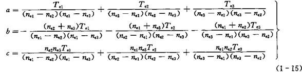 將上式展開, 冪次高低全并,然后和(1-13)式比較系數,即可得三個待定系數為: