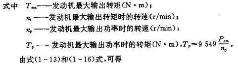 如果沒有所要的發動機外特性,但從發動機銘牌上知道該發動機的最大輸出功率及相應轉速和該發動機的最大轉矩及相應轉速時,可用下列經驗公式來描述發動機的外特性: