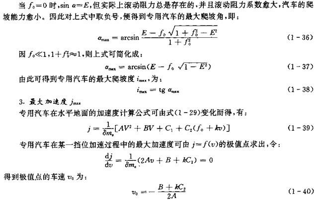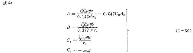 式(1-27)是汽車直線行駛時的驅動力和行駛阻力的平衡方程式,式(1-29)則反映了汽車在克服了外界其它阻力之后所具有的加速能力,由此可計算出評價車輛的動力性指標。