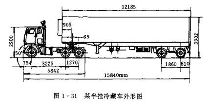 圖1-31為某半掛冷藏車的外形圖,其發動機的外特性如圖1-30所示,整車的有關參數風表1-8和表1-9。