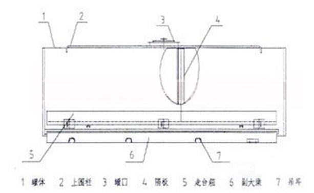 5、罐體(附圖一):水罐結(jié)構(gòu)為橢圓柱或梯形體,用優(yōu)質(zhì)鋼板制成,整個罐體分單倉或多倉,倉內(nèi)可分室,中間隔板下端有通孔,每倉之間焊有分倉加強防波隔板,以減輕汽車行駛時罐體內(nèi)水的沖擊和提高罐體的強度。為了防止銹蝕,罐體外表涂防銹漆及裝飾漆。